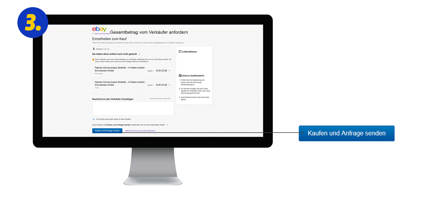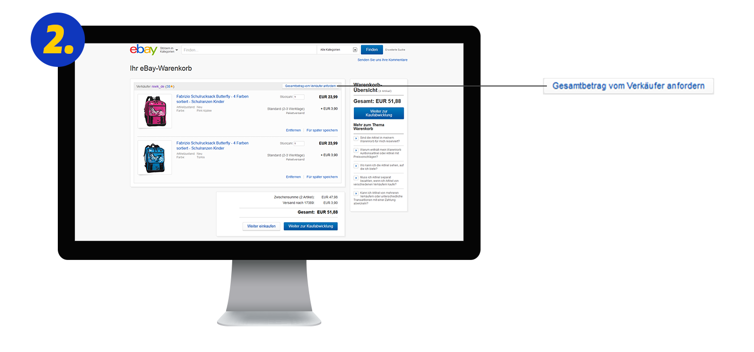 Wenn Sie jedes Produkt in den Warenkorb gelegt haben, nutzen Sie die Funktion "Gesamtbetrag vom Verkäufer anfordern".